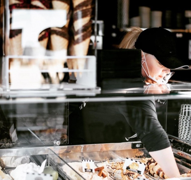 Fungerer som isbutik og brødudsalg.